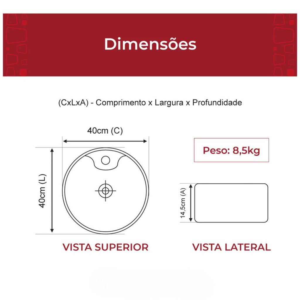 Com formato redondo clean, esta cuba se adapta perfeitamente a diferentes estilos de decoração, do clássico ao contemporâneo, valorizando o ambiente.